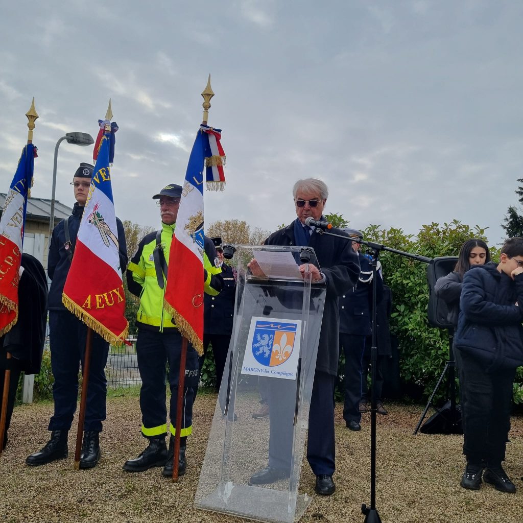 Un accueil très chaleureux des élus de la Mairie de Margny-lès-Compiègne. Des discours émouvants de Monsieur le Maire, ainsi que du Président de l’ANACRA. Plusieurs gerbes ont été déposées.